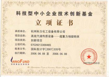 當(dāng)前位置: 主頁(yè) > 關(guān)于科力 > 資質(zhì)榮譽(yù) > 超重力床創(chuàng)新基金立項(xiàng)證書